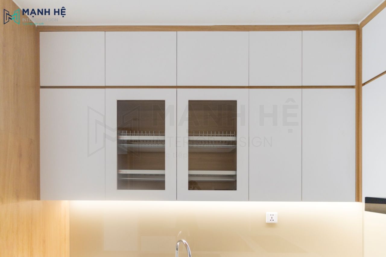 Tủ bếp trên từ gỗ công nghiệp phủ melamine màu trắng thanh lịch