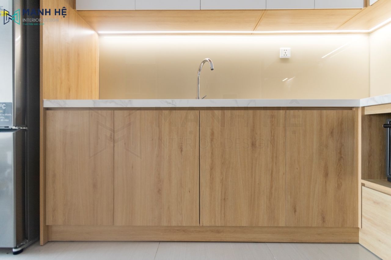 Phòng bếp tiện nghi với nội thất gỗ công nghiệp